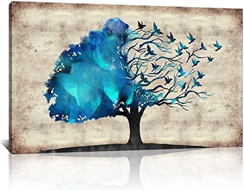 Amazon Com Derkymo Teal Canvas Wall Art Abstract Life Tree Picture Painting Print Bird And Tree Branch Artwork Teal Wall Decor For Living Room Stretched And Framed Ready To Hang 24 X40 Posters